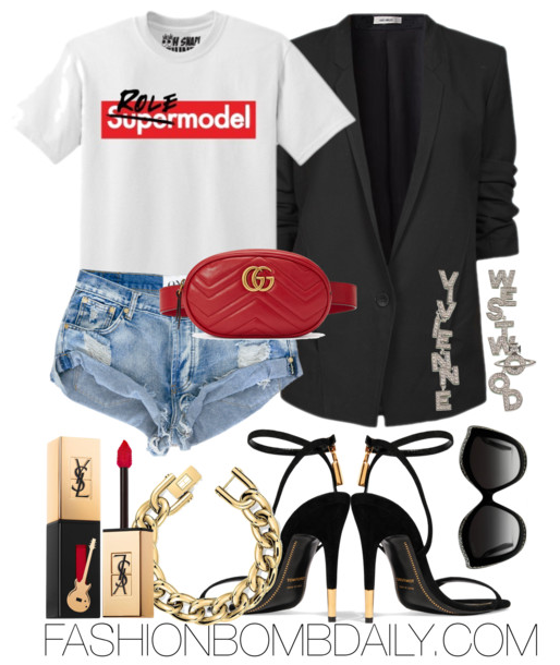 Mixing a silk cashmere pink wrap cardigan with a corseted strapless dress and chunky jewelry will give you a bossy yet laid back look perfect for transitioning from work to after flawlessly. Don’t forget the flourish of hot pink lips and black nail polish!