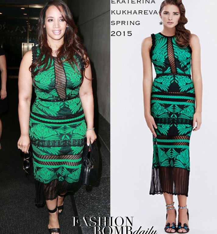 Orange is the New Black star Dascha Polanco gave Poisin Ivy chic at Hooray Henry’s the other night in a Fall 2015 Green Printed Bodycon Dress by Ekaterina Kukhareva: