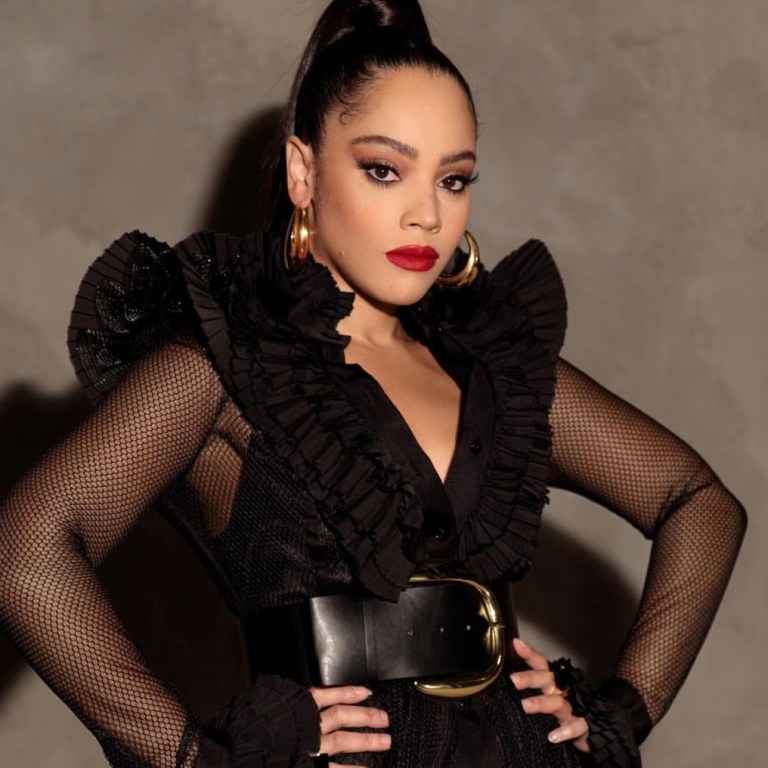 Christina Milian paired $915 Dsquared2 cut out sandals with an $88 Nasty Gal Rage Knit Green and Black Dress for a night on the town.