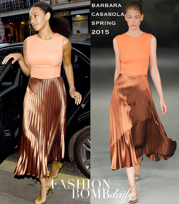 It’s been a moment since we’ve had a Solange sighting, but the popular DJ did make an appearance at a Pride Week event at Kiehl’s in New York City! She mastered the 1’s and 2’s in a Fall 2013 tan and yellow ensemble by Harbison: