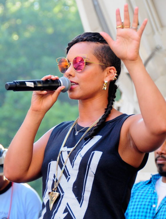 Alicia Keys was spied with son Genesis and friend Daphne Wayans in West Hollywood in a $375 pair of Gucci Round Aviator Sunglasses: