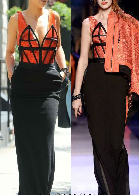 Rita Ora served high fashion at her most recent X Factor London Auditions photo call in a Spring 2015 pinstriped ensemble by Jean Paul Gaultier:
