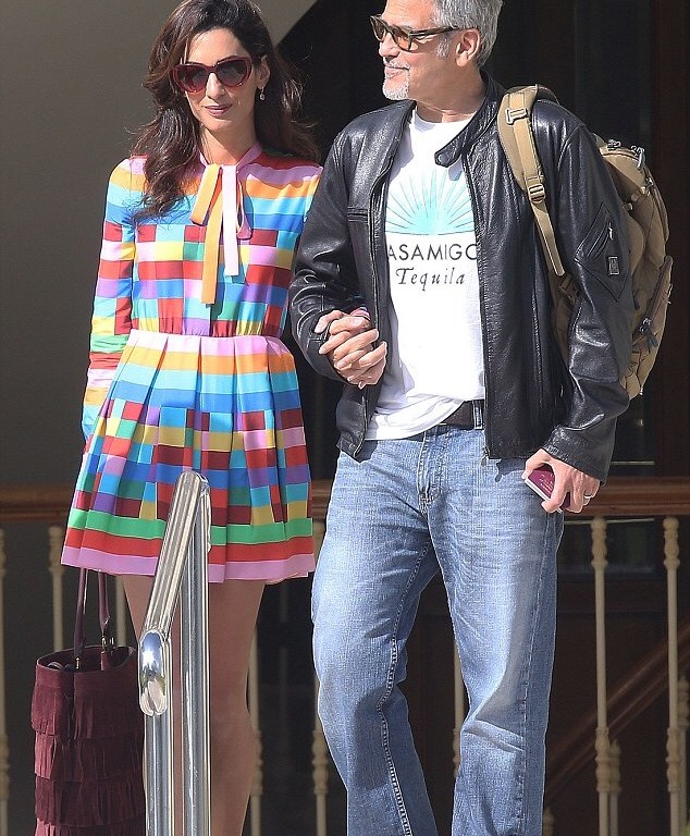 Amal Clooney partied it up with husband Georges this weekend in Ibiza in a $2,435 Vionnet Cowl Neck Gold Dress:
