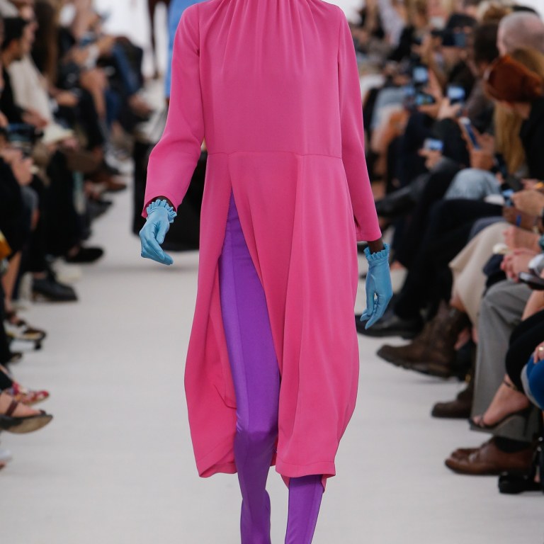 Accordingly, the showing brimmed over with bright jumpsuits, dresses with sheer mesh and tulle, and flirty skirts. Made mostly out of woven jersey, each piece had stretch, and thus could fit a range of shapes and sizes.