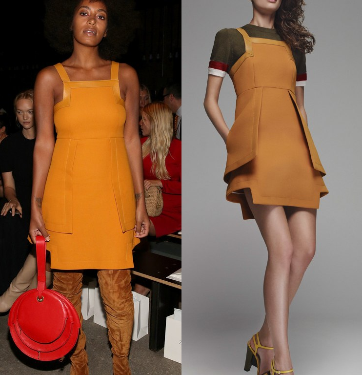 Her dress is available for pre-order, and boasts a mock neck and futuristic sleeves.