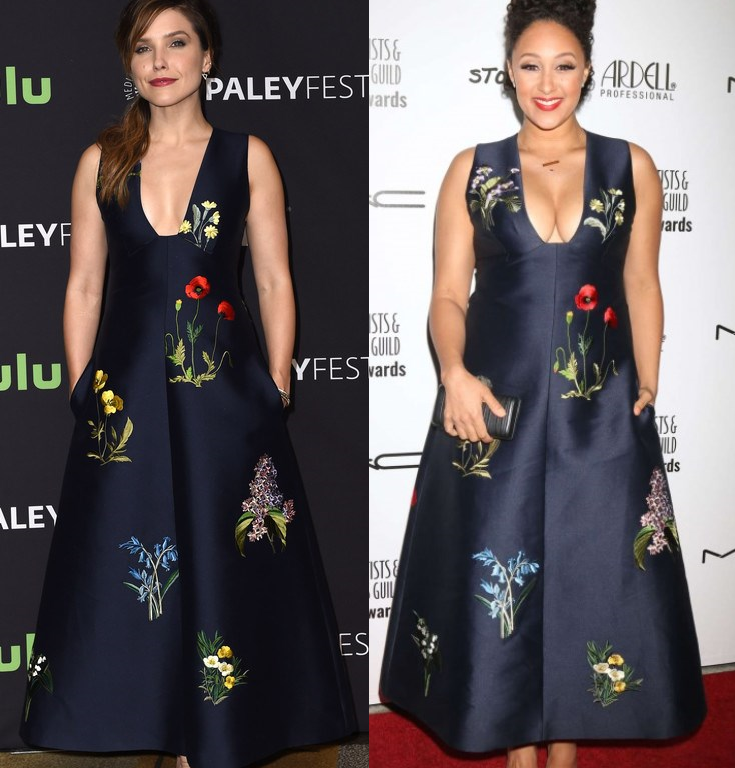 Tamera Mowry-Housley called forth Spring at the 2016 Make-Up Artist and Hair Stylist Guild Awards in a $3,345 Stella McCartney Ink Kaitlyn Floral Embroidered Shantung Midi Dress: