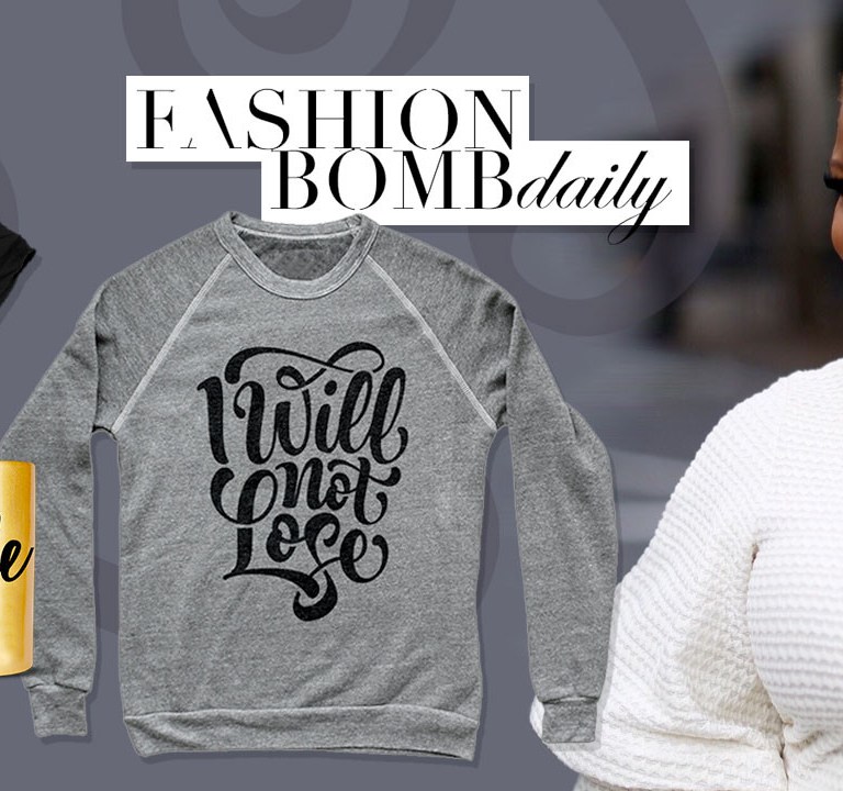 Because we love you, we are giving away a gift box of Fashion Bomb Daily x Tees in the Trap goodies, chock full of fabulous merch like Hustle Cups, stickers, and more.