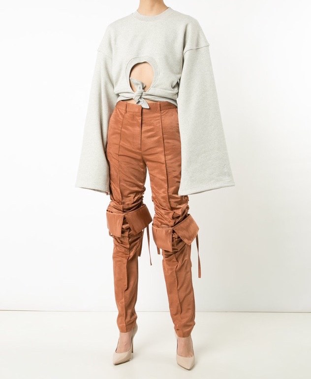 The french vanilla toned trousers have a high waist, tie detail, and elasticated cuffs.
