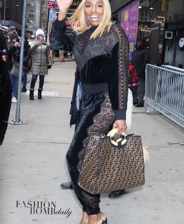 Kelly matched her ‘fit with a brown floor-length coat and blue skinny jeans.