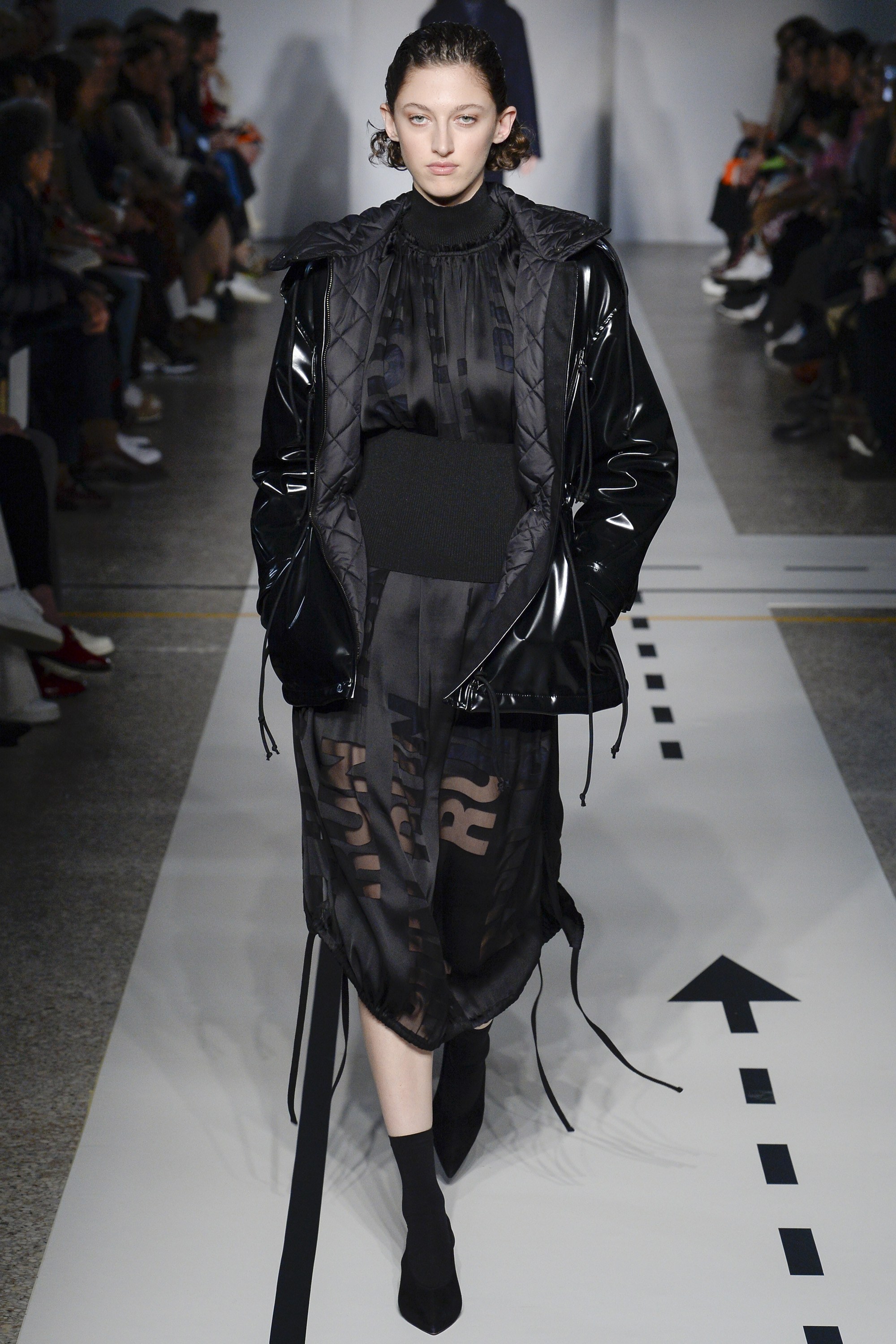 But it’s a logomania world, thus the collection’s graphics did pack a punch. A “Steady Run” skirt suit on Adwoa Aboah had major street style snap appeal, while a quilted “Run” scarf and sweater on Imaan Hammam was perfection…though not made for the actual sport, of course.