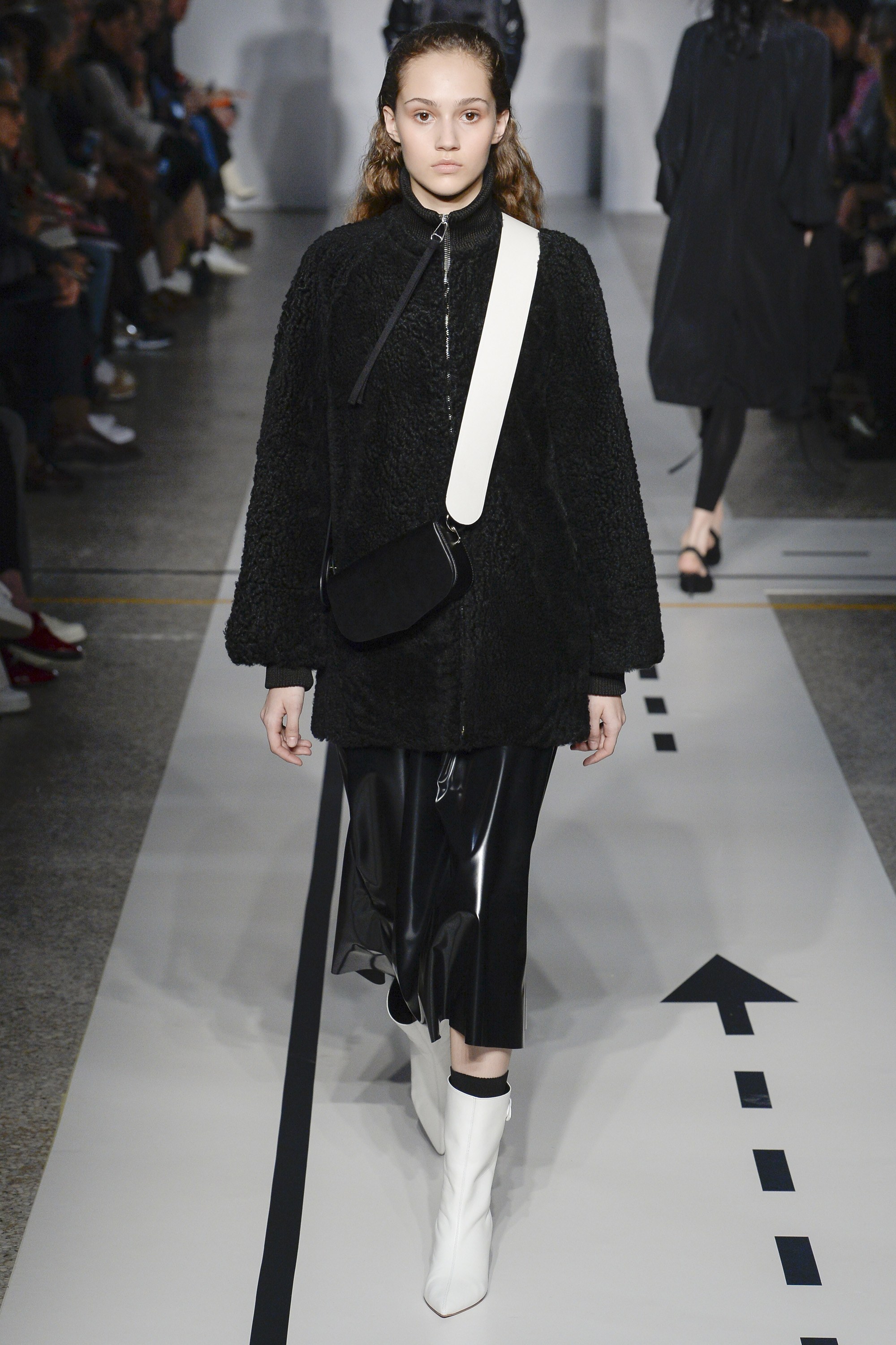 As is requisite for the season, outerwear was a big focus with cozy, fur coats and zip-front designs, as well as glossy patent leather pieces taking centerstage.