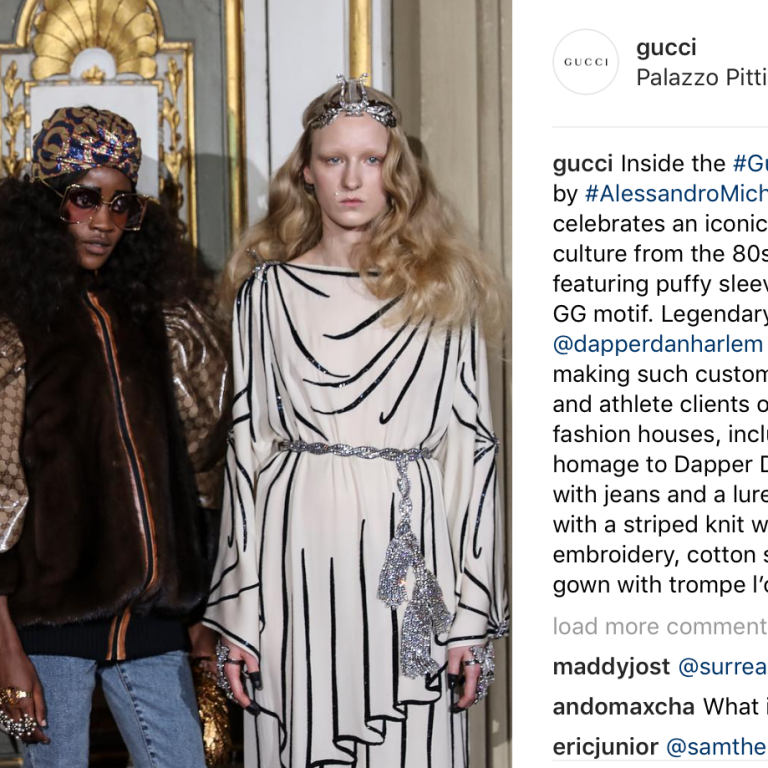 Of course it was all Gucci at the brand’s Cruise 2018 Fashion Show in the Palatine Gallery of the Pitti Palace in Florence. Creative Director Alessandro Michele presented his artsy collection amid Renaissance paintings and a flock of faddish celebs who were all dressed in the appropriate uniform – Gucci.