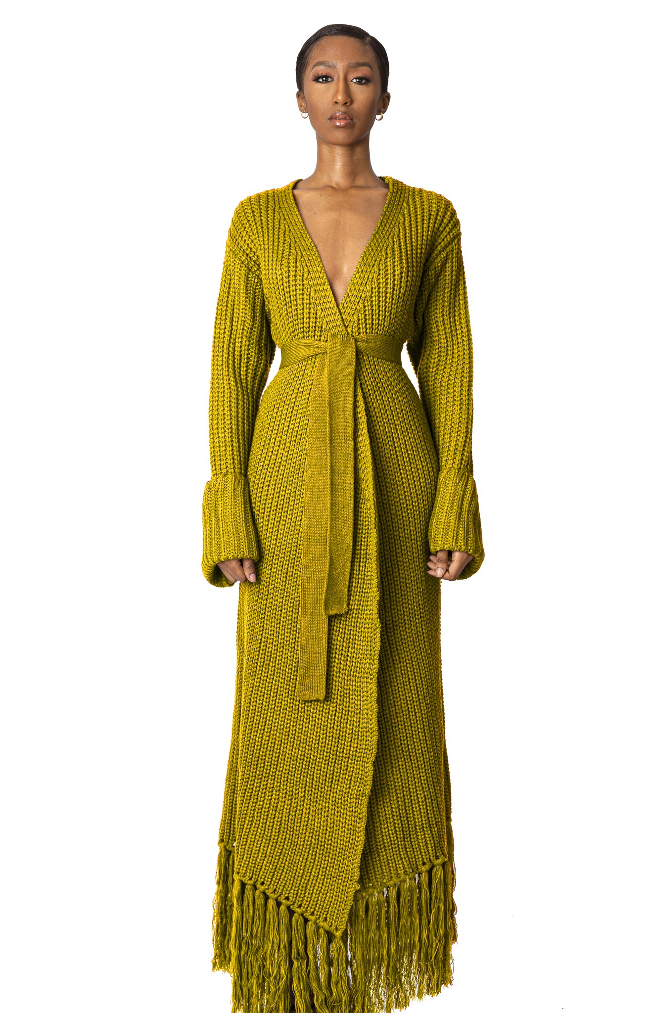 The Miya wrap cardigan dress is perfect for the Fall, and comes in a host of colors, including yellow, black, teal, and green.