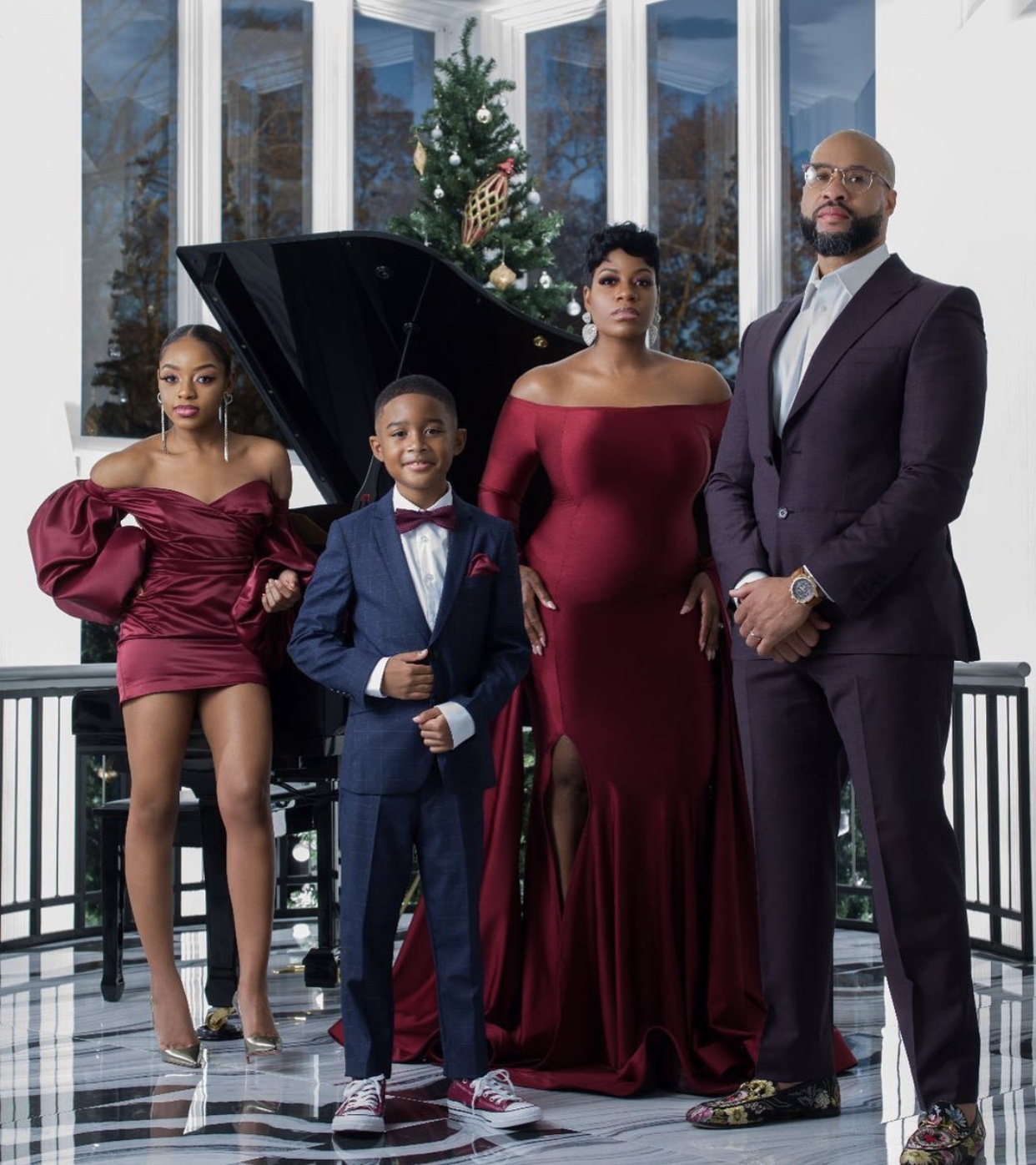 Fantasia recently shared her family’s holiday photos which included her daughter Zion, her son Dallas, and husband Kendall Taylor and followed a red and navy color scheme.
