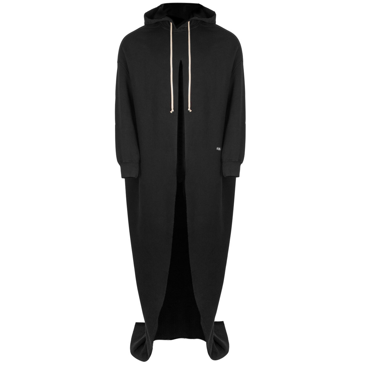 It is no secret that the Bad Gal enjoys her streetwear garments. After all, she did have her very own streetwear line with Puma. For this particular look, she went with the Phlegethon Peter Cloak and Sacrimini Mini Skirt from Rick Owens’s Spring/Summer 2021 collection. The denim mini skirt features a stretch coated denim fabric with an elastic waistband and two front mini slits. Serving as a deconstructed longline hoodie, the hooded cloak appears with a raw cut slit going down the middle and happens to be floor length which adds to the dramatic effect of the garment.