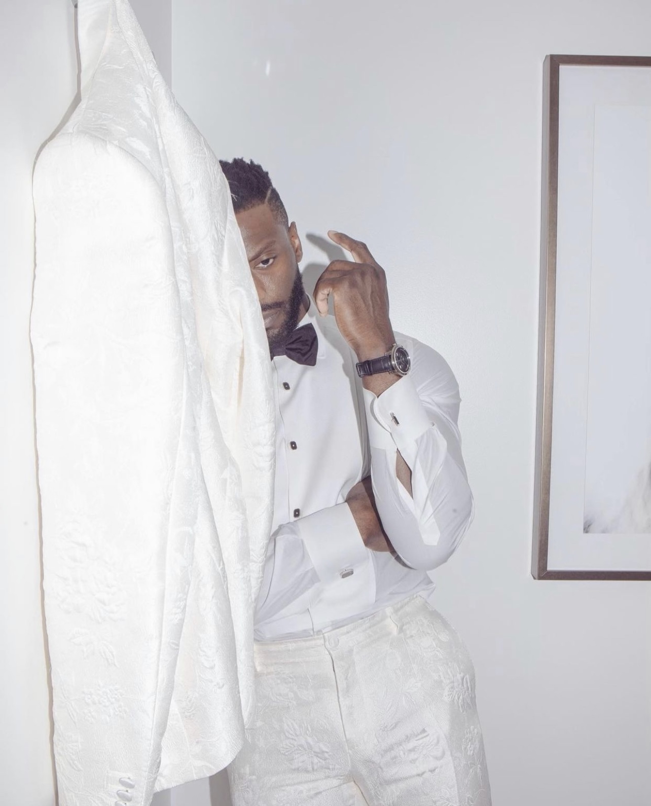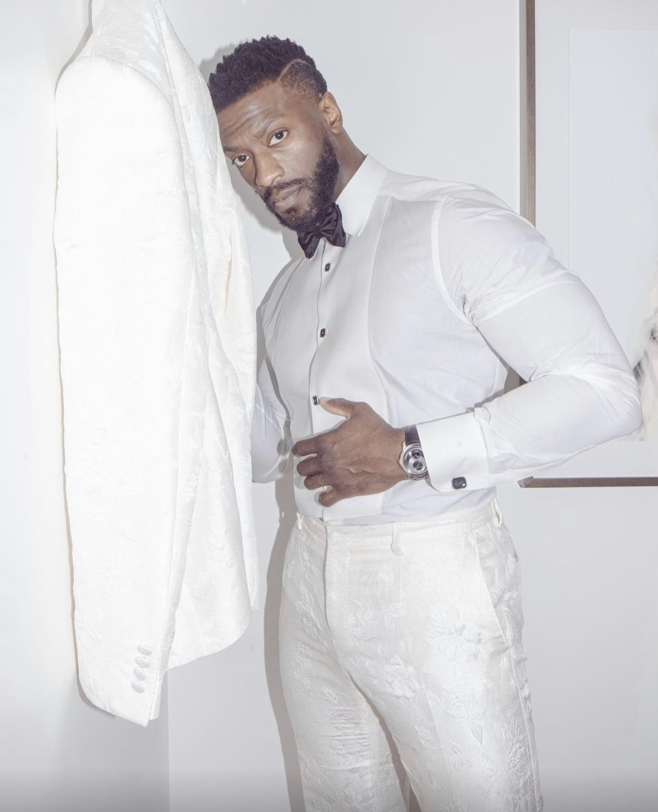 Representing for Fashion Bomb Men, Aldis Hodge wore a Dolce and Gabbana suit, styled by Law Roach. Hodge’s Dolce and Gabbana tuxedo was tailored to perfection and nice on the eyes with its cream color. It also featured a jacquard floral design throughout along with a lapel complete with a wood panel-like look. The look was accessorized with Jimmy Choo shoes and a Harry Winston watch, cuff links and short studs.