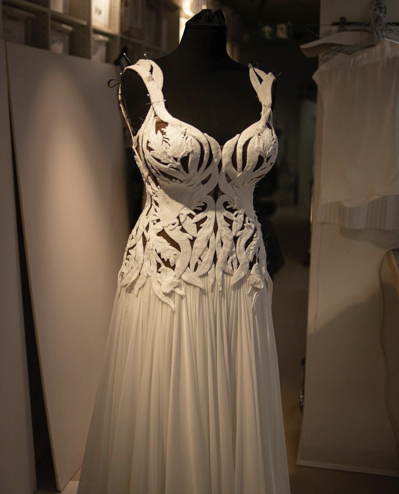 Viola Davis is always one to watch on any red carpet! Davis graced the 2021 Oscars wearing Alexander McQueen, styled by Elizabeth Stewart. Her gown was a custom McQueen piece by Sarah Burton which featured intricate detailing that simply cannot go unnoticed. Appearing in white, the dress has a 360 degree gathered chiffon skirt and hard-to-miss cage-like feature complete with embroidered appliqué.