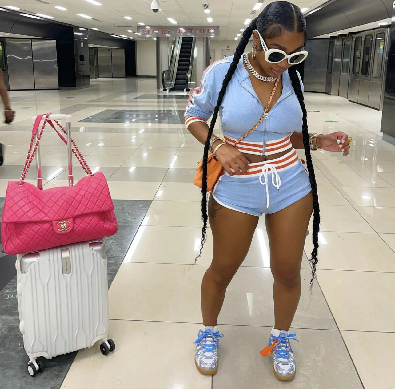 Jayda Cheaves was spotted catching flights and giving us some style inspiration when it comes to airport looks. She kept it cozy in a blue Fashion Nova terrycloth set that she paired with designer accessories. Let’s get into her look: