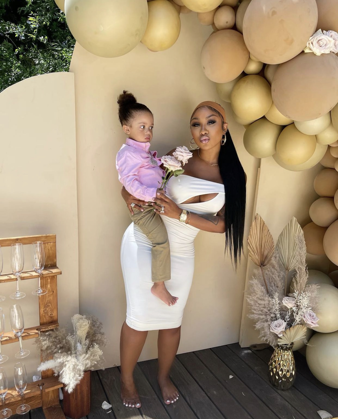 Ari Fletcher hosted a Mother’s Day brunch on Sunday joined by family and friends. The brunch featured boho-chic decorations, a curated menu and a bouncy house for kids in the comfort of her backyard. For the occasion, she snagged pictures with her son Yosohn wearing a white Fashion Nova dress.