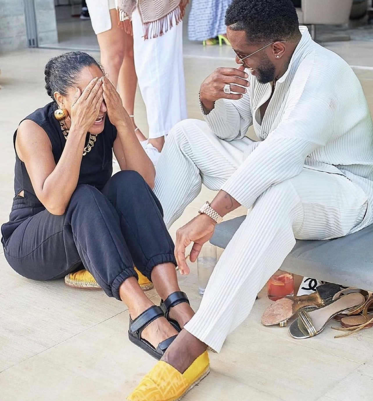 Tracee Ellis Ross donned a casual all-black look as she laughed with Diddy.