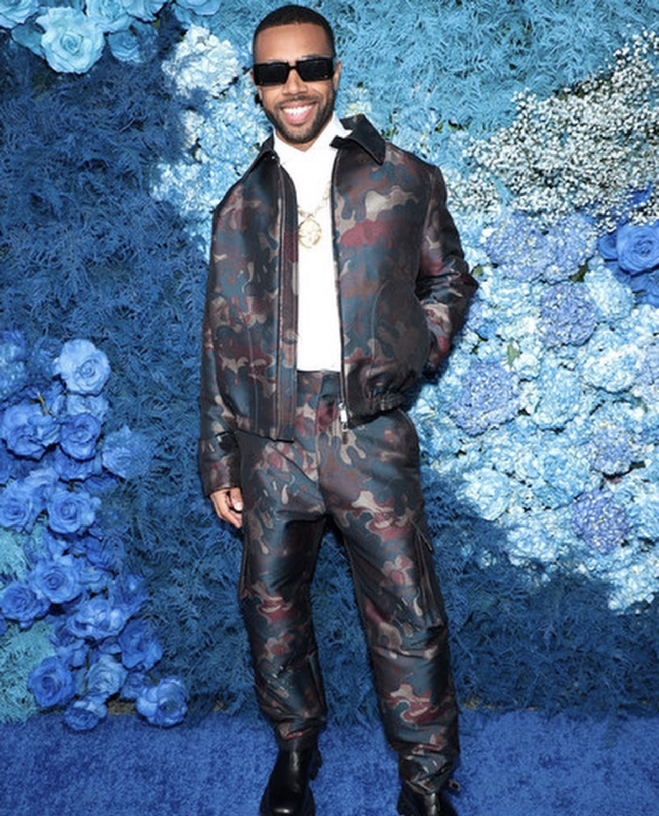 Quincy Brown wore a t-shirt, button-up shirt, pants by Venia paired with a Kyle’Lyk Spring/Summer 2022 RTW trench coat and Alexander MacQueen boots. For accessories, he went with Tiffany and Co and Johnny Nelson jewelry. His look was styled by Whitney Whitaker.