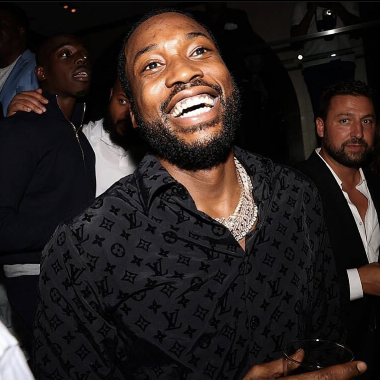 Meek Mill was spotted at the event wearing a Louis Vuitton button shirt.