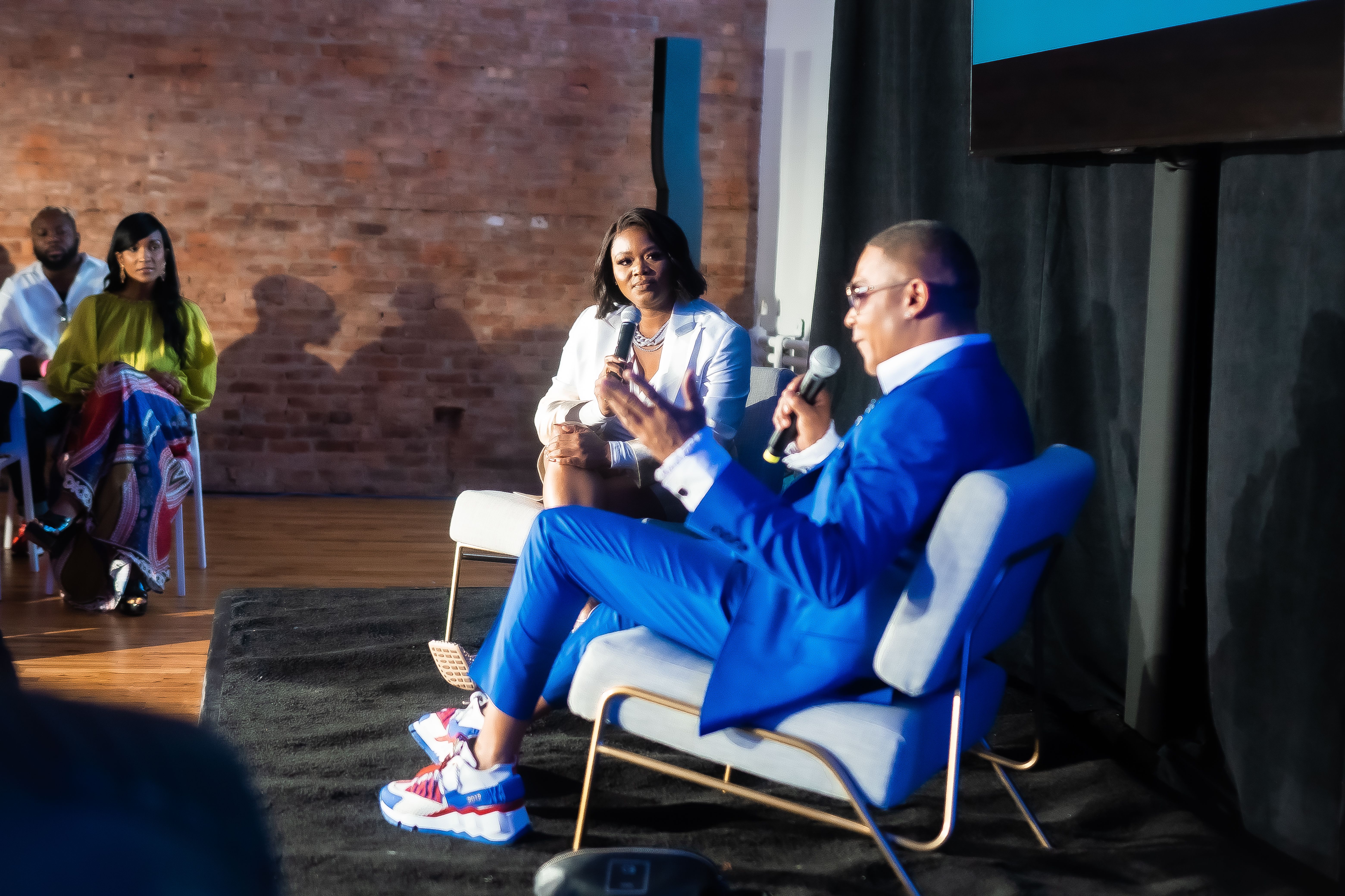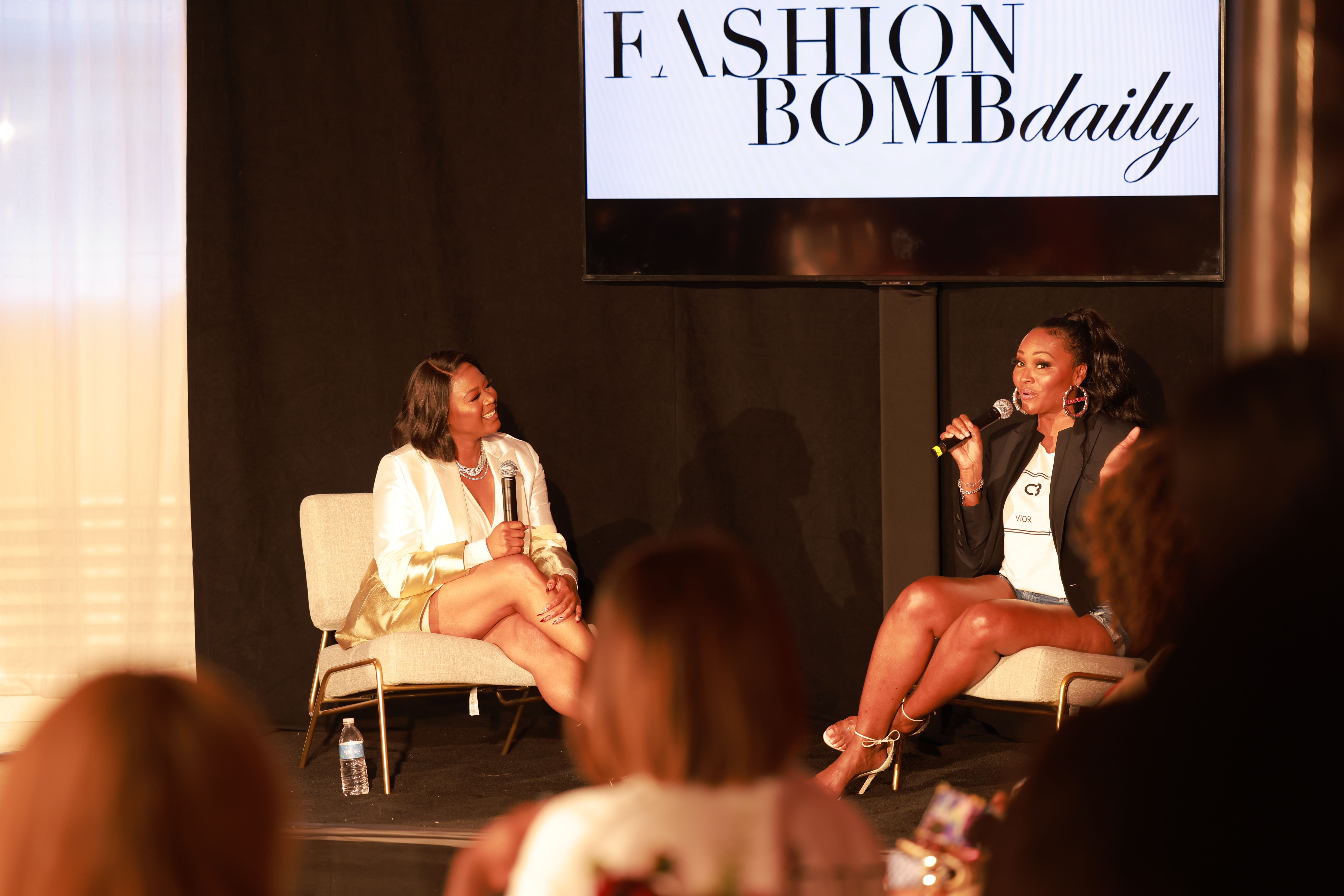 In between the shows, Claire Sulmers quenched our thirst for Convos with Claire by chatting briefly with some of our special guests Cynthia Bailey and Kal Williams along with designer Shane Justin, Bree Billiter, and our Shea Moisture Next Bomb Designer Contest Winner, Khang Le.