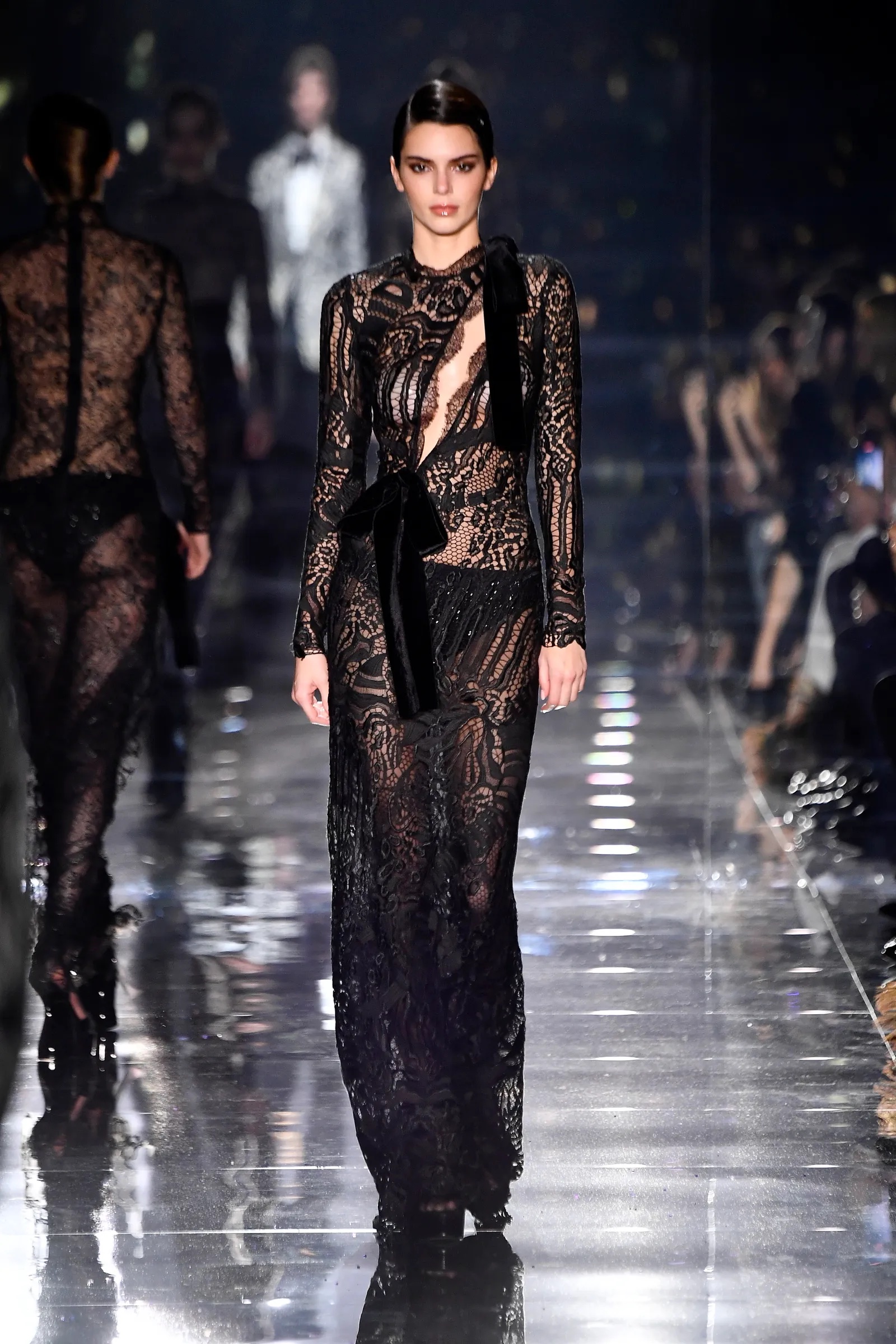 Ciara attended the 2021 VMAs wearing a black lace Fall 2020 look by Tom Ford, styled by Rob Zangardi and Mariel Haenn. Complete with a sexy asymmetrical cutout detail, the lace gown rests over a Commando undergarments adorned with velvet bows. The singer also wore a pair of Femme heels to complete her look. For her hairstyle, she went with a sleek ponytail.