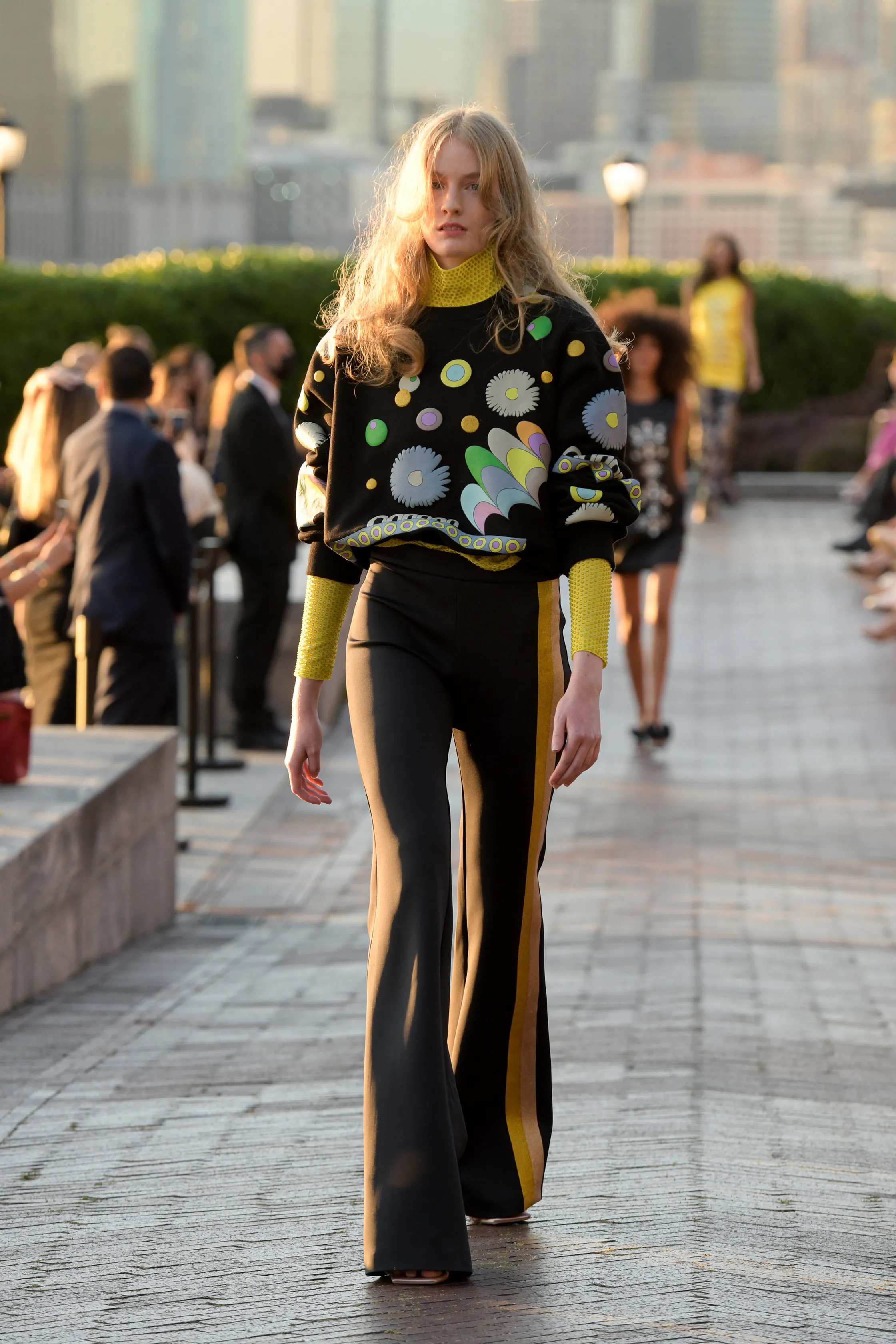 Designer Cynthia Rowley found inspiration in Y2K style and fashion, nodding to the iconic era through the use of prints such as butterflies, bedazzling, matching two-piece sets, and an overall energetic color palette. The collection also makes a point to include a hint of sexy with body-hugging mini dresses and long sleeve printed rompers, which also oozed of the early 2000s influence.