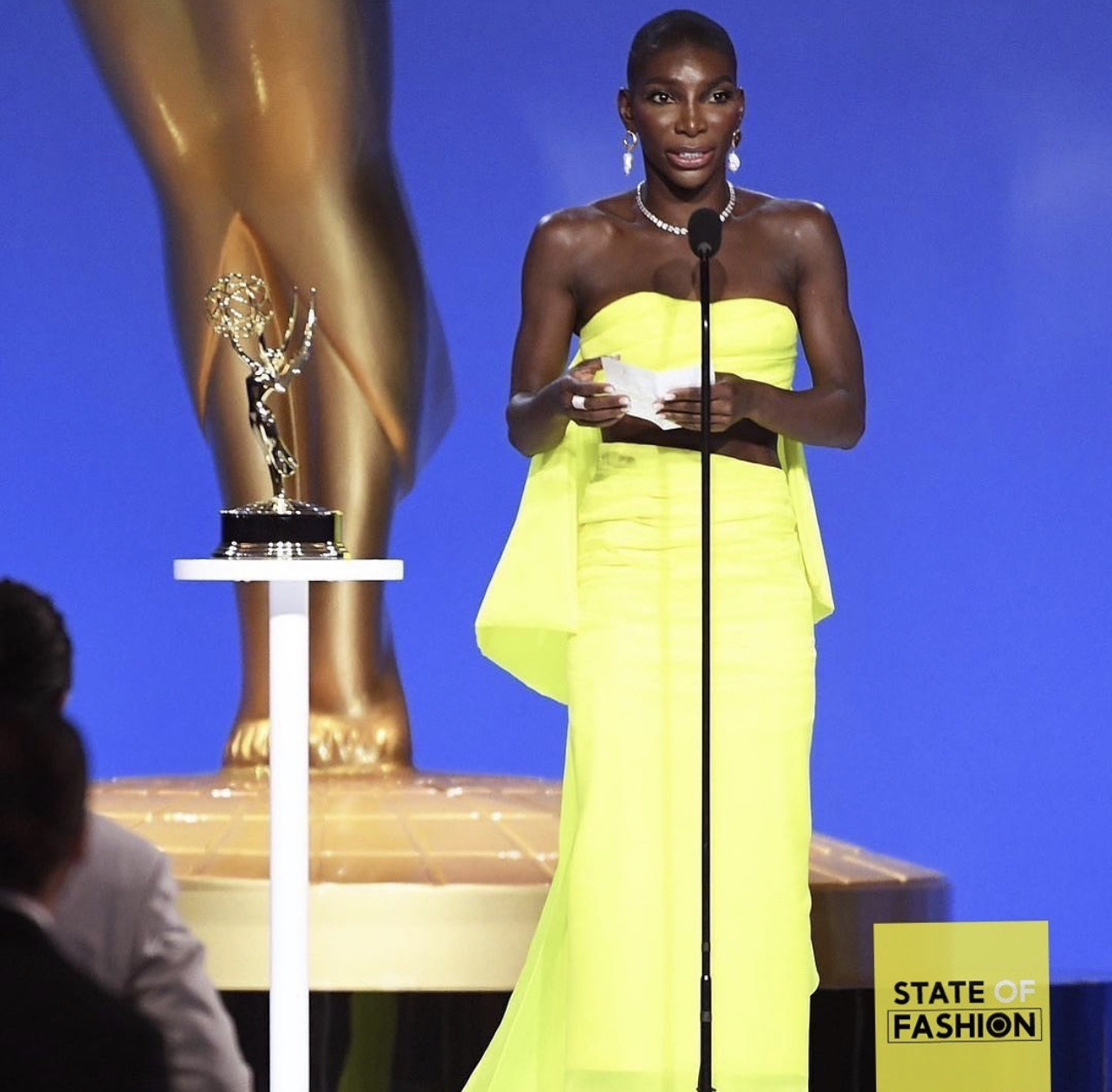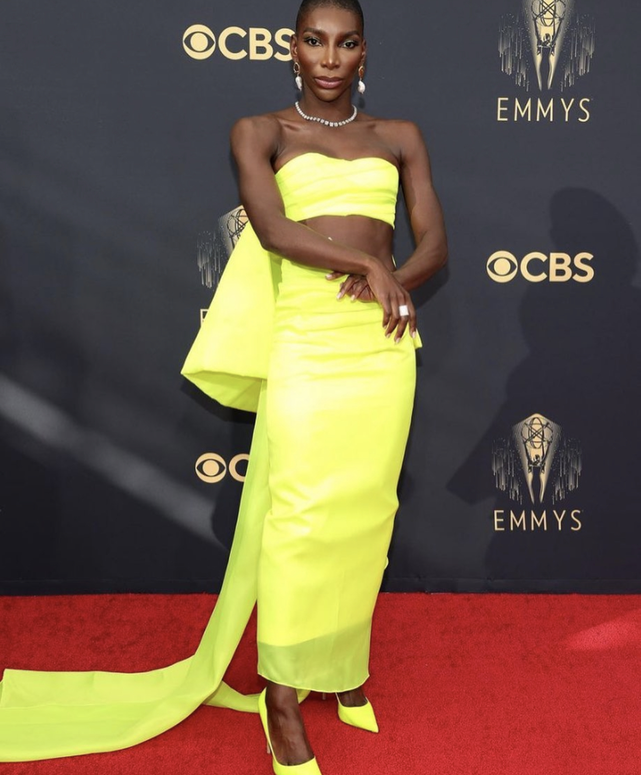 Of course, everyone looks forward to the evening’s red carpet fashion which assists in the building the hype of the actual award ceremony. On the scene, Fashion Bomb Daily captured all the best style moments on the red carpet from Michaela Coel’s neon yellow moment to Kerry Washington’s sleek silver gown. Based on engagements during our red carpet coverage, we gathered the top ten best dresses from the 2021 Emmys.