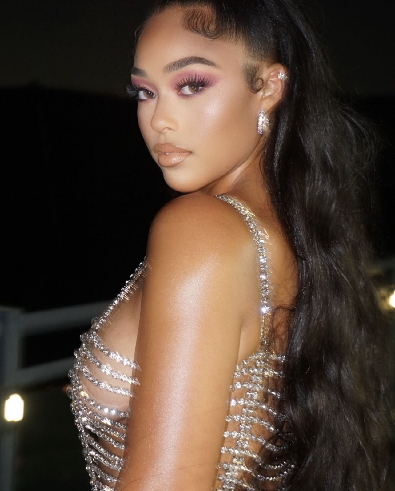 She also wore complimenting crystal accessories such as hoop earrings and a chain detail handbag. Additionally, Jordyn went with a wavy high ponytail for her hairstyle of the night, executed by Mariama Dashiell.
