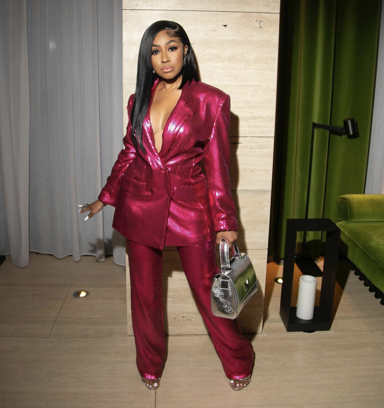 Yung Miami’s style moments are truly one to watch as the rapper is solidifying herself as quite the “fashion girl”. She recently attended Marcell Von Berlin’s Spring 2022 runway show wearing a pink sequin suit and silver handbag by the brand.