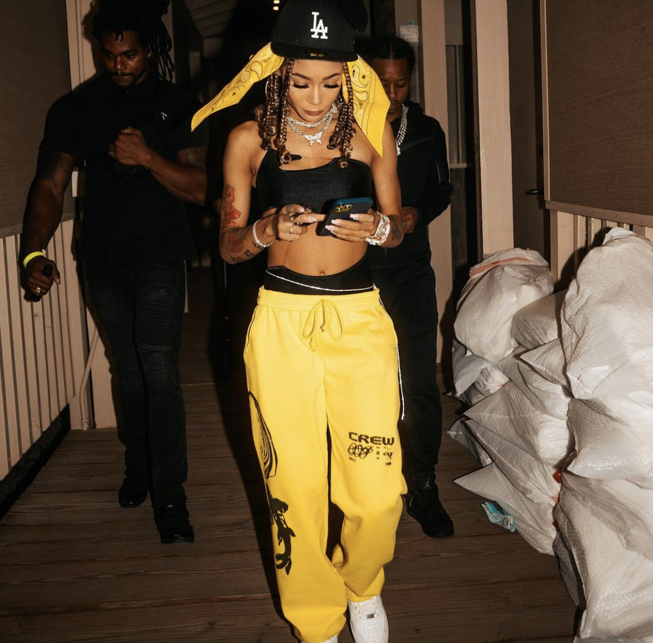 Coi Leray was spotted performing in Albuquerque while on the The Back Outside Tour with Lil Baby and Lil Durk. For her set, the rapper was seen in a Fashion Nova bodysuit paired with yellow sweatpants.