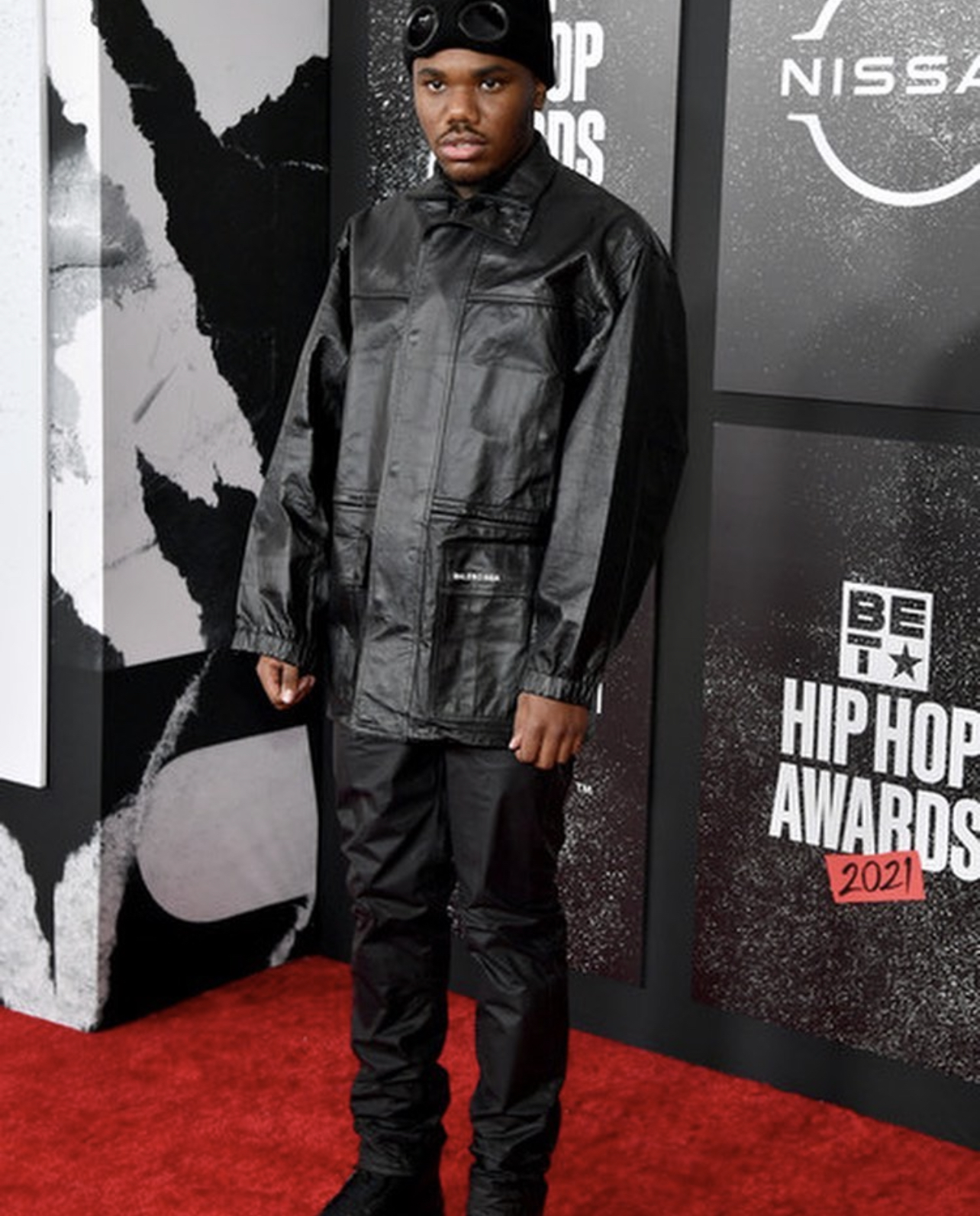 Baby Keem wore an all-black Balenciaga look to the 2021 BET Hip Hop Awards.