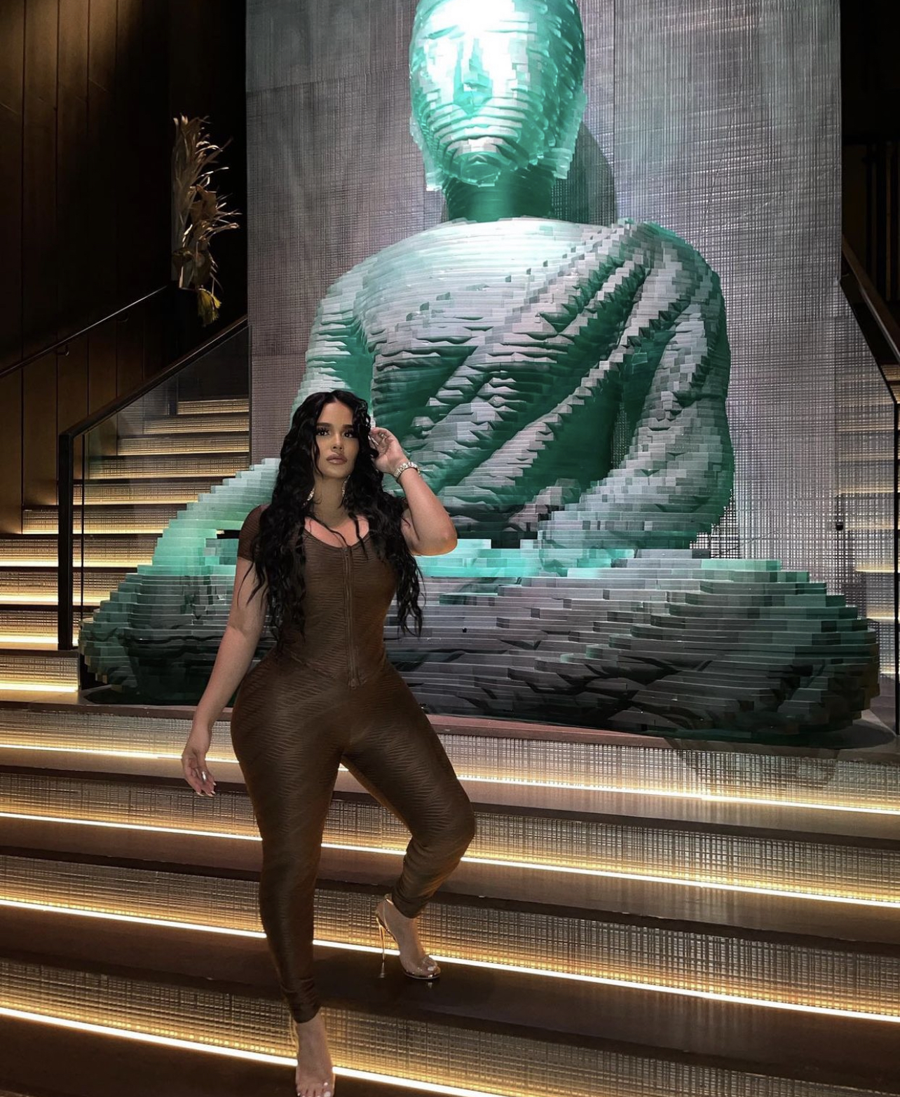 Emily B stepped out for a night out wearing a stylish ensemble from Fashion Nova. She was outfitted in a brown legging set from the global fashion retailer.