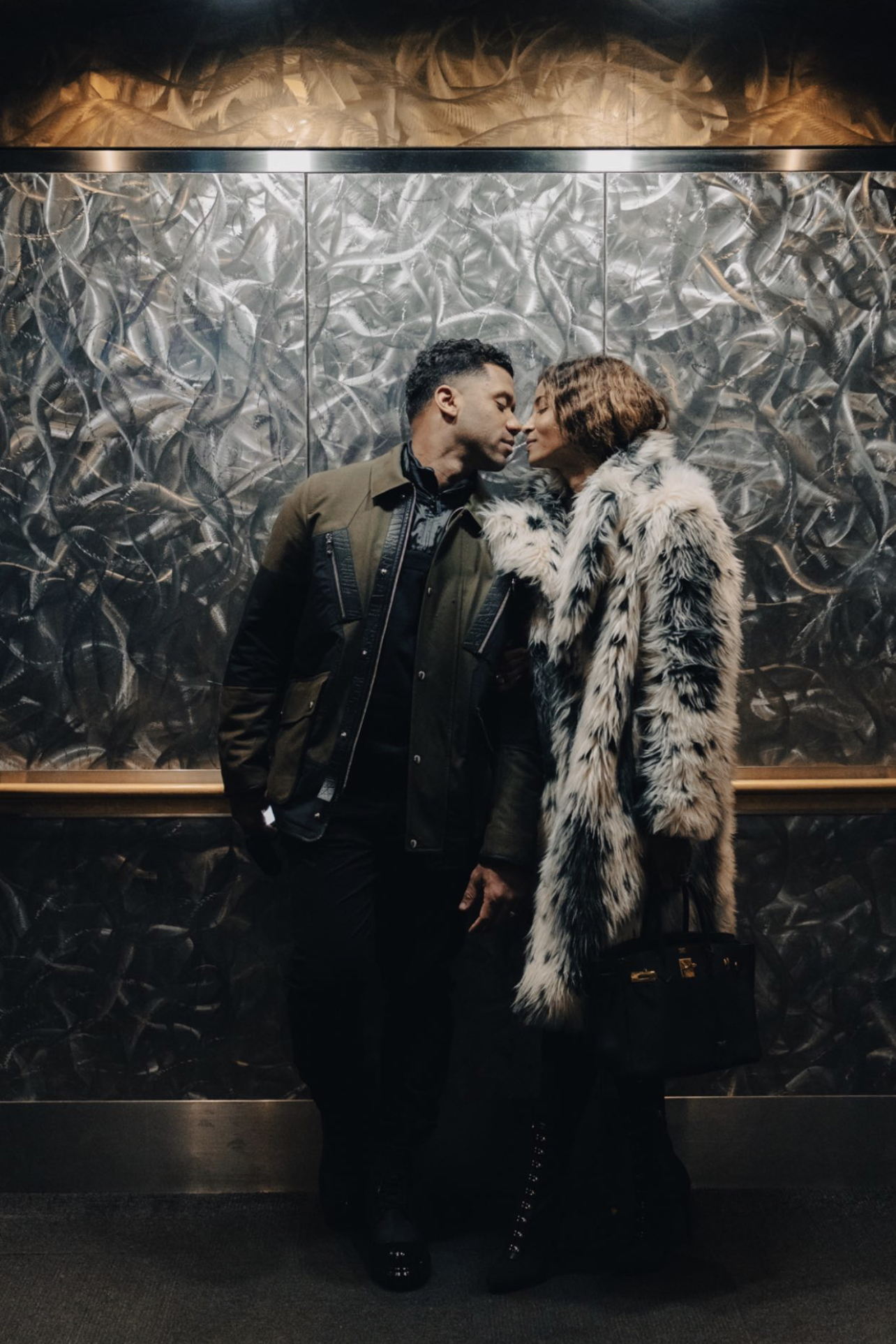 For the birthday surprise, Ciara wore the $748 Amour Faux Fur Coat from her new brand LITA by Ciara. Underneath the coat, she appeared to be wearing a black dress paired with black lace-up boots. She also carried a Hermès Birkin handbag to go along with the stunning ensemble.