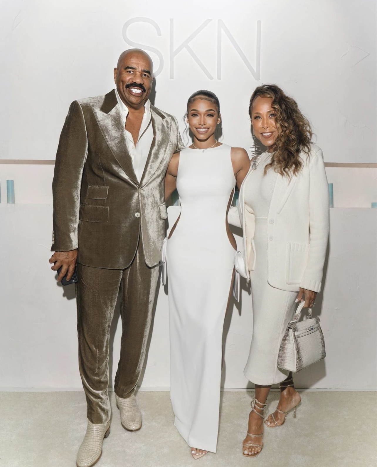 Familiar faces like Marjorie and Steve Harvey, Normani, Ryan Destiny, and more were on the scene showing their support for Lori Harvey and her skincare line. Michael B. Jordan was also in attendance and delivered a touching speech, expressing his proudness of her and her business.