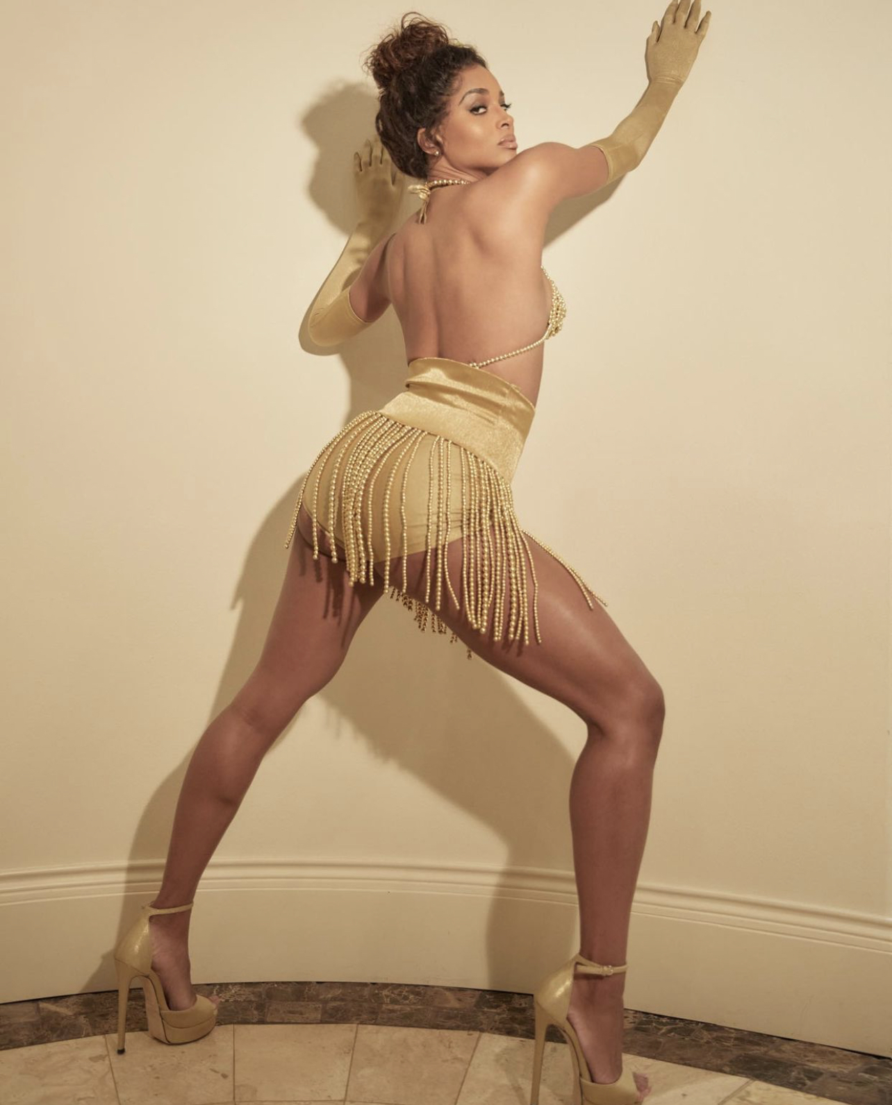 Ciara’s birthday celebrations did not stop with her black and white Dolce and Gabbana look. The singer took to Instagram to share another archival look from the brand, this time going for the gold.