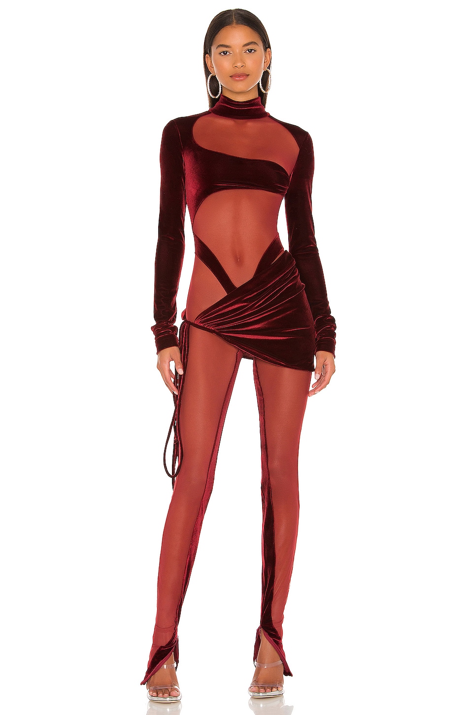 This particular LaQuan Smith catsuit has also been spotted on Kylie Jenner who wore the piece in the merlot colorway.