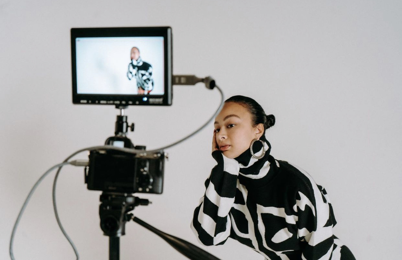 Draya Michele shared some behind-the-scenes flicks from a recent photoshoot, where she posed in a black and white turtleneck mini sweater dress from Fashion Nova.