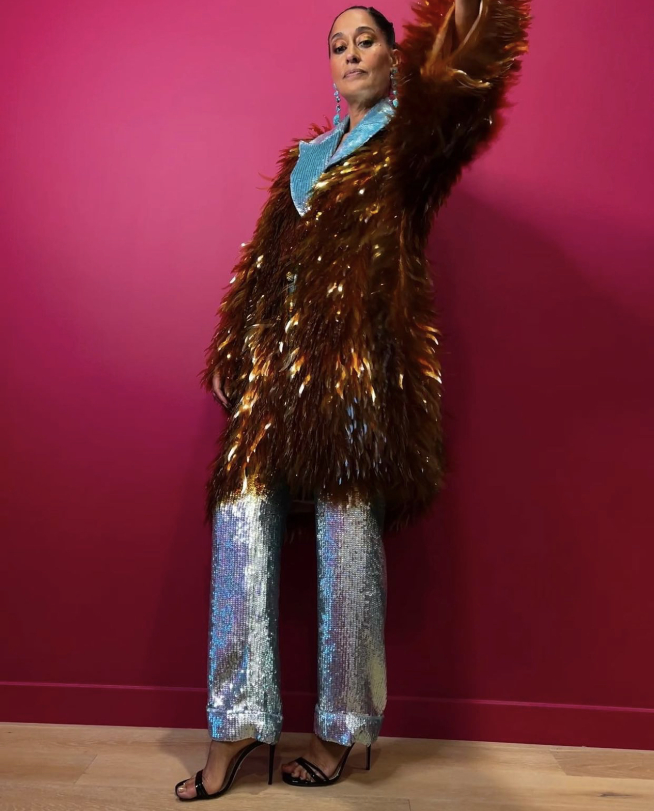 Tracee Ellis Ross wore a Gucci sequin and fringe look, styled by Karla Welch.
