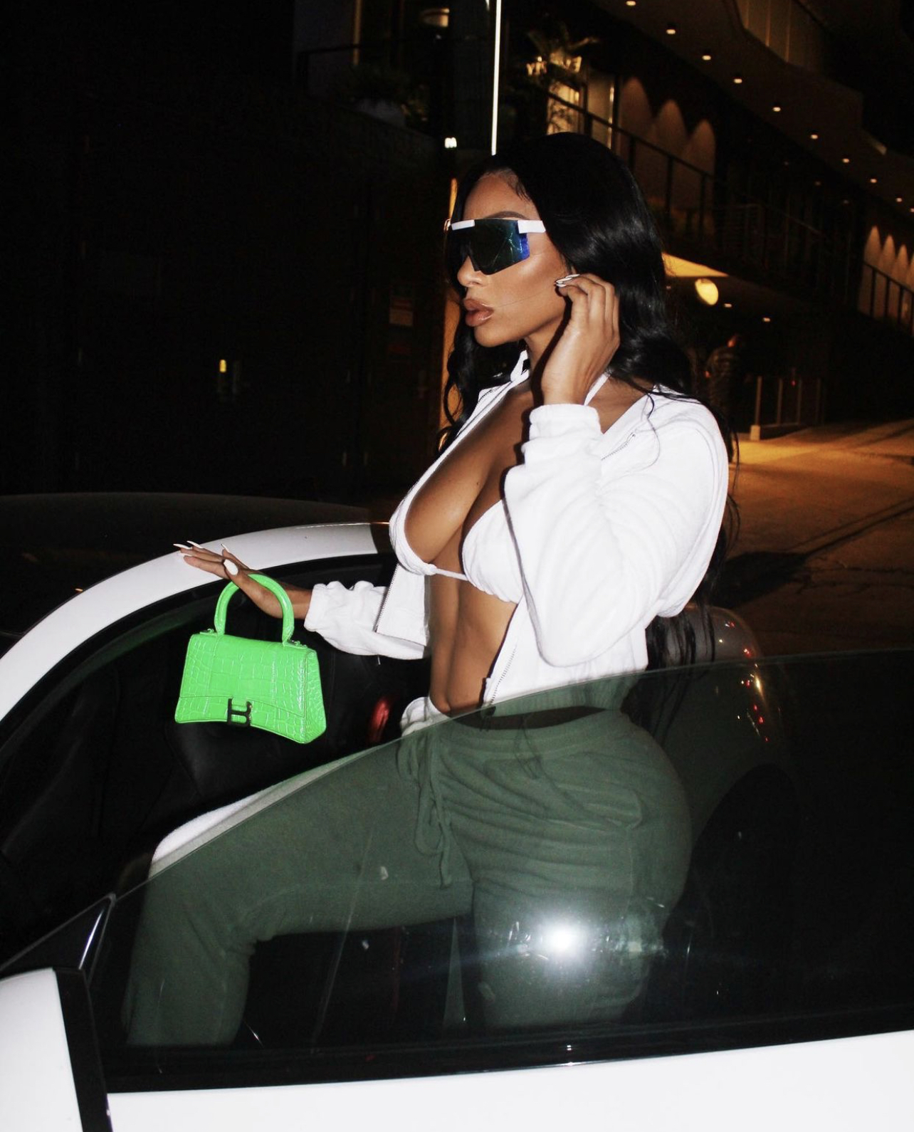 Tommie Lee was spotted heading out for the night, hopping out of her car in a sporty-chic ensemble. As for her look, she wore a white three-piece jogger set from Fashion Nova.
