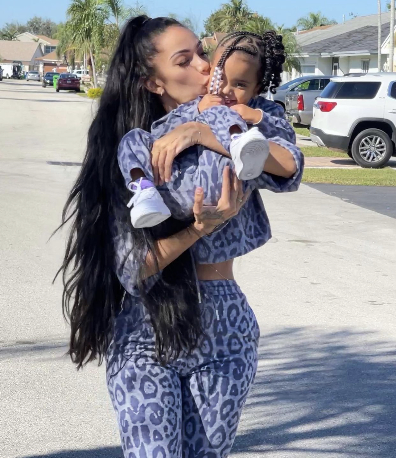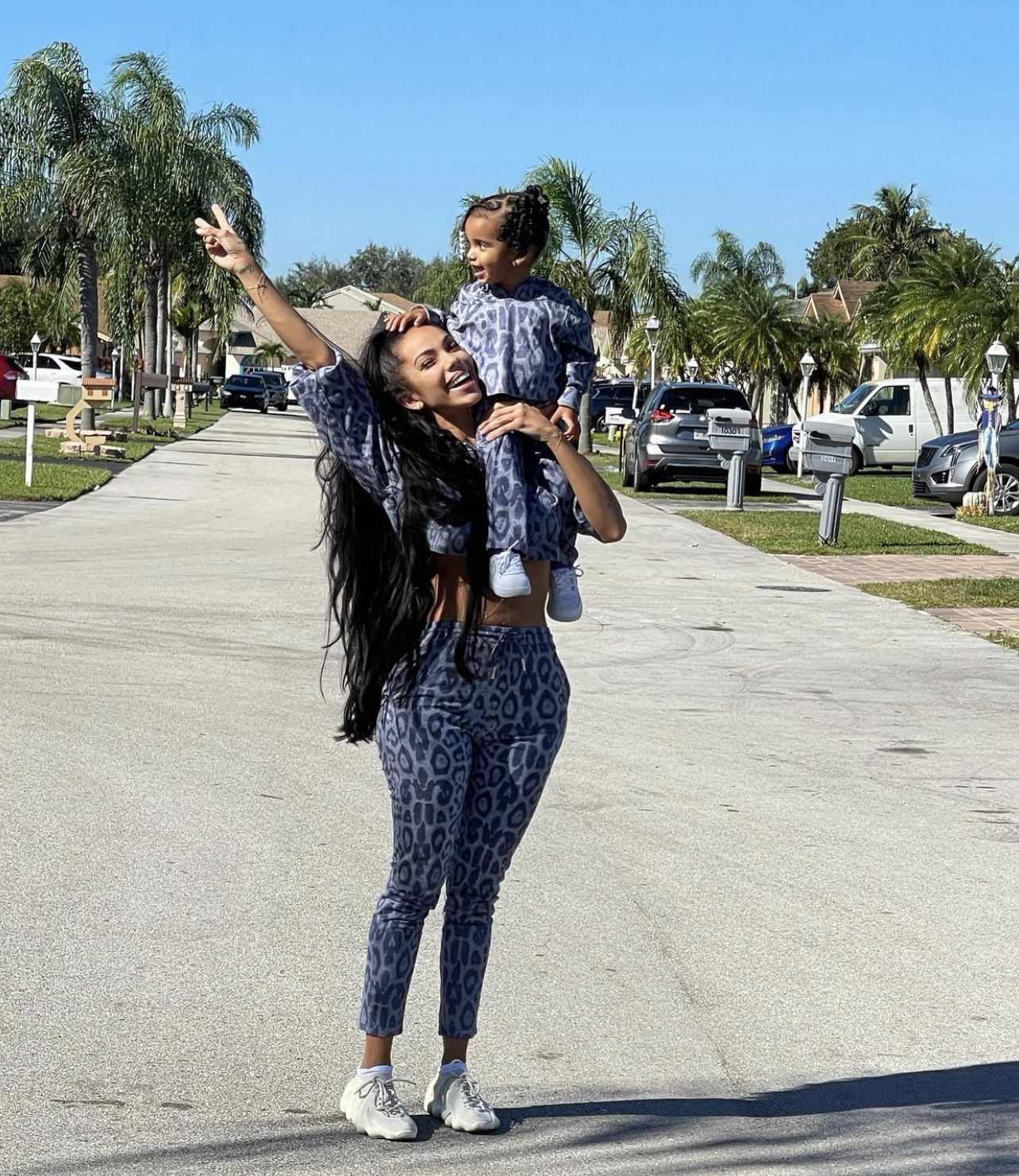 Erica Mena and her daughter Safire were also spotted “twinning” in matching sets. The mother-daughter duo rocked blue leopard print jogger sets from Fashion Nova.
