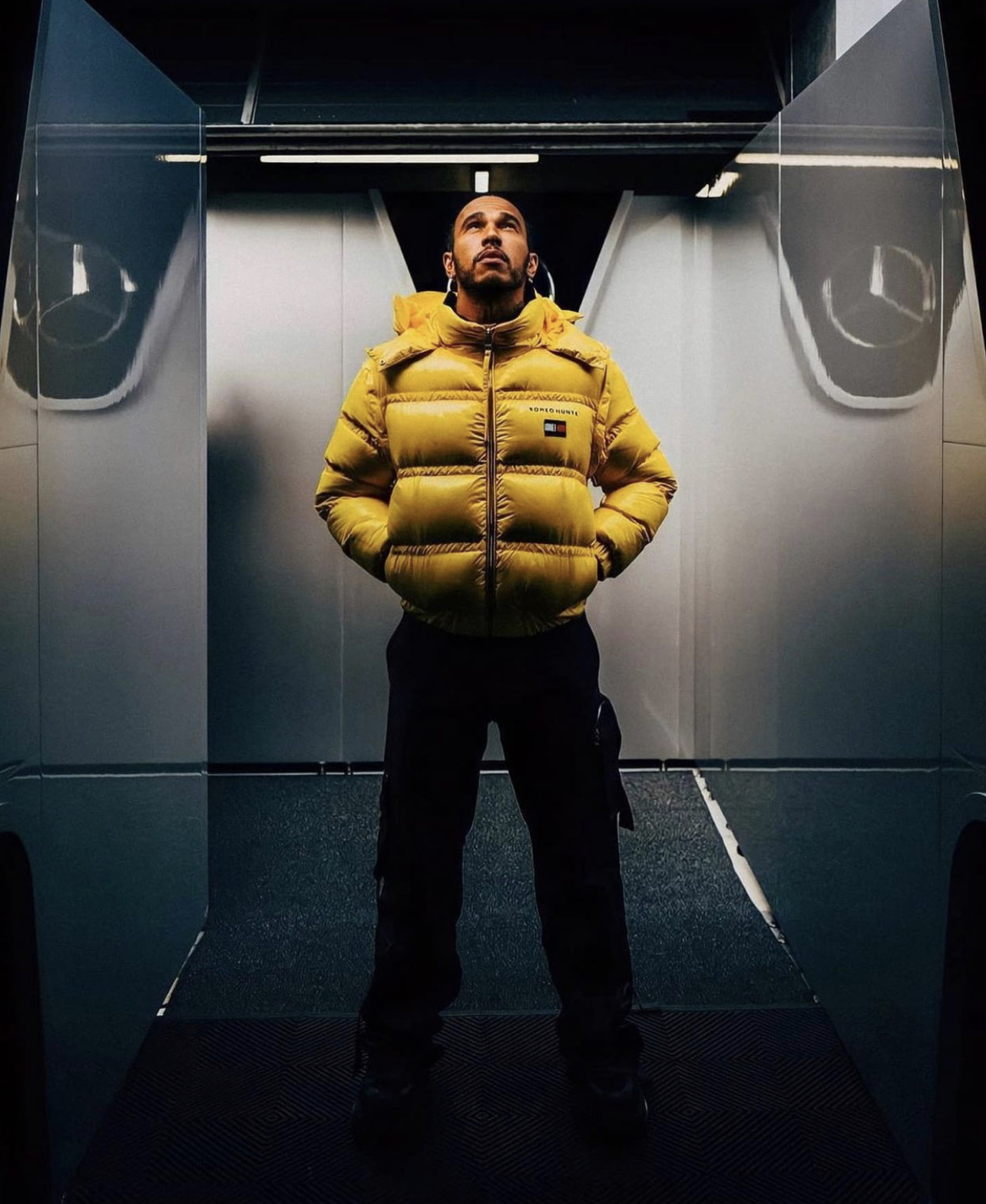 Noteworthy pieces of the collaboration include the colorblock trench coat, striped polo shirt and matching shorts, heeled boot, and puffer jacket. Celebrities like Maluma, Mack Wilds, Lewis Hamilton and more have been spied in the collaboration’s pieces.