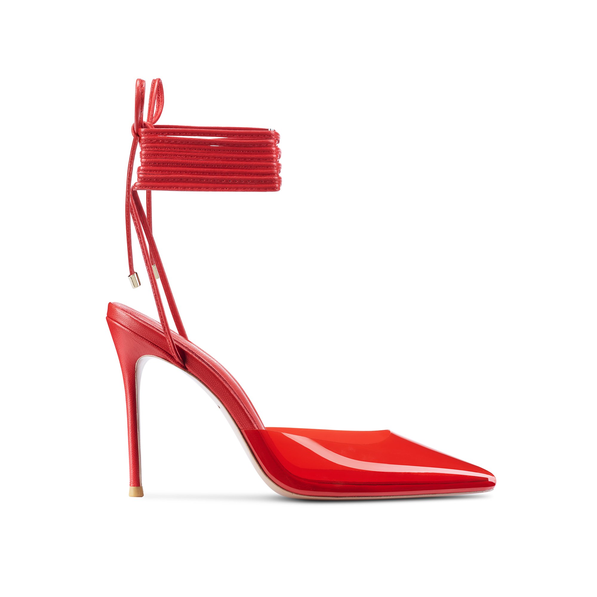 Jada Pinkett Smith wore a red Giambattista Valli Fall/Winter 2021 Couture look, styled by Georgia Medley. The look was competed with Swarovski jewelry and $325 Flor de Maria “Barby” pumps.