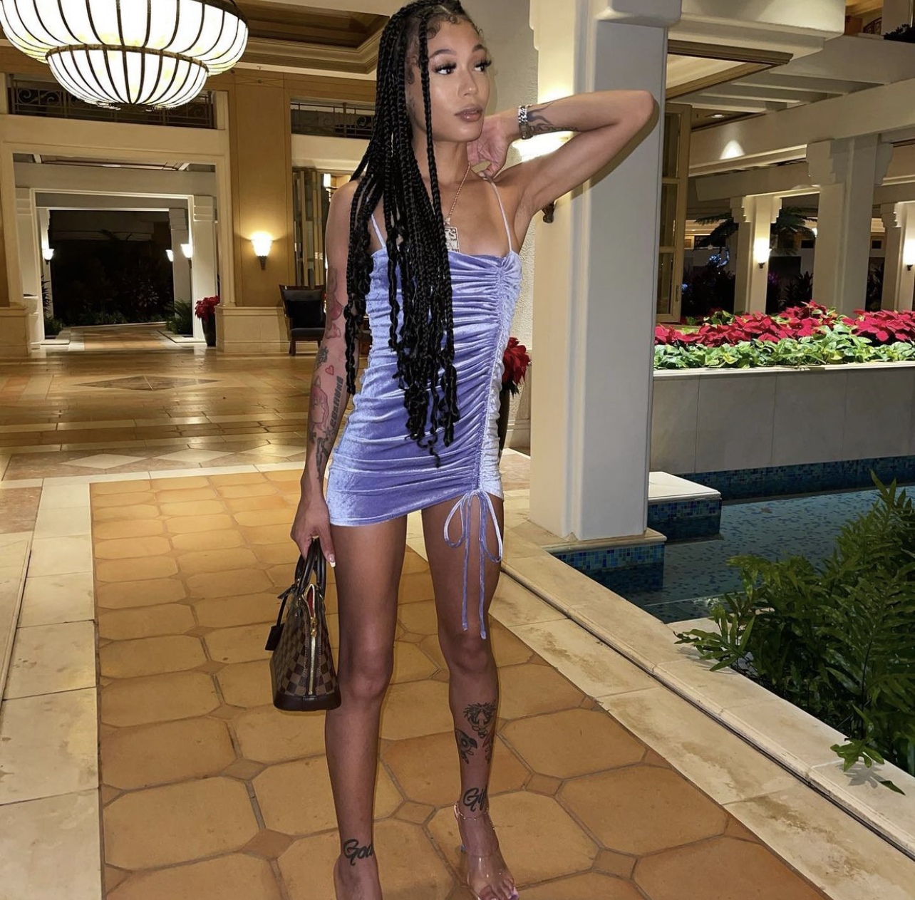 Coi Leray was spotted vacationing in Maui during the holidays. During her island trip, the rapper headed out for the night wearing a stylish light purple ruched velvet mini dress from Fashion Nova.