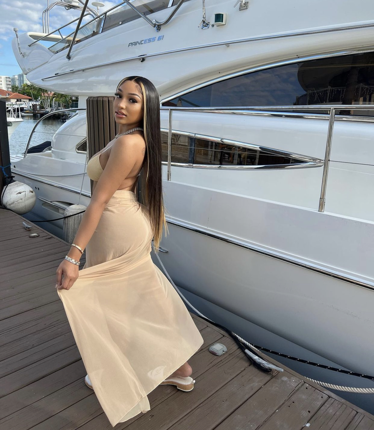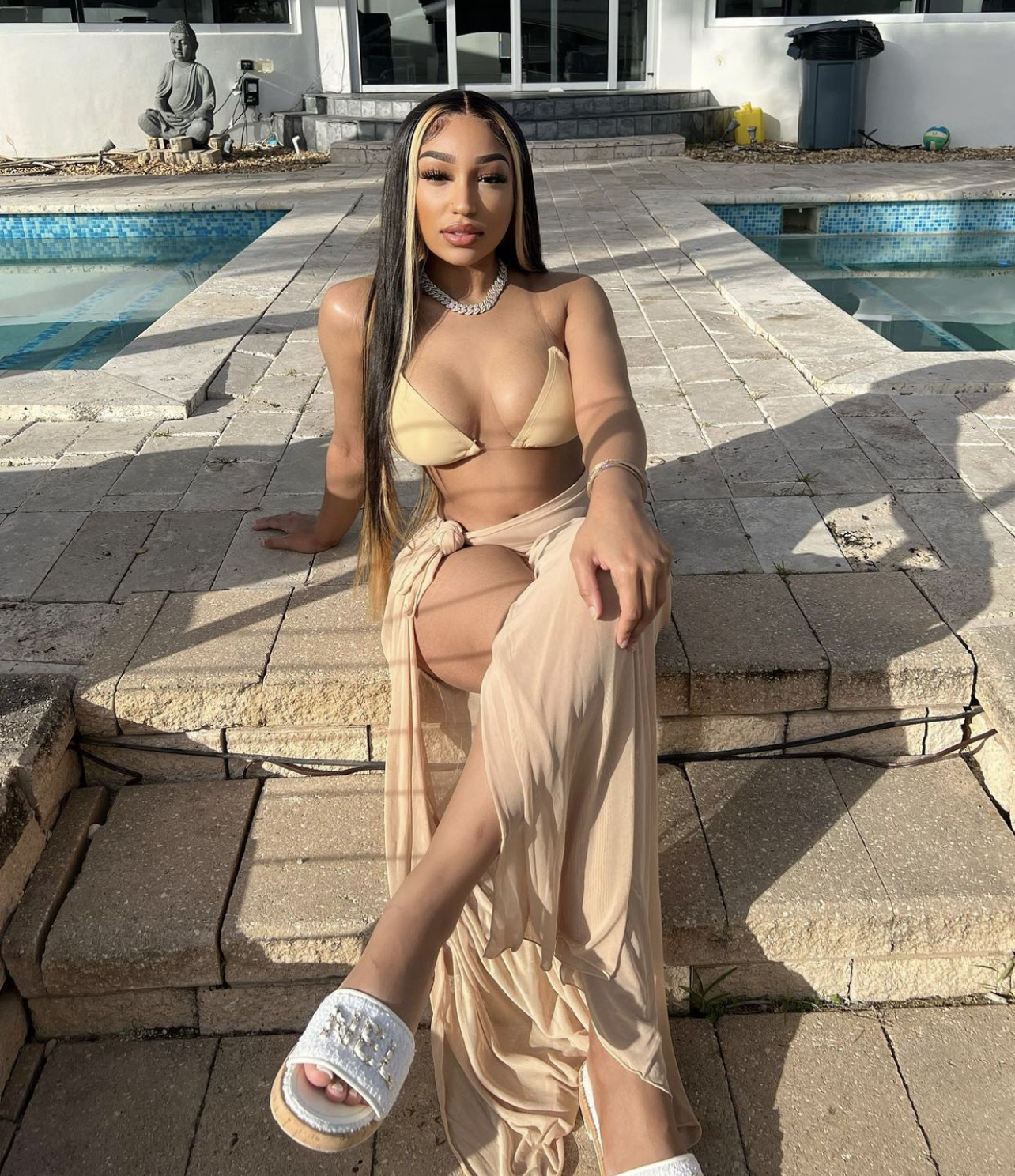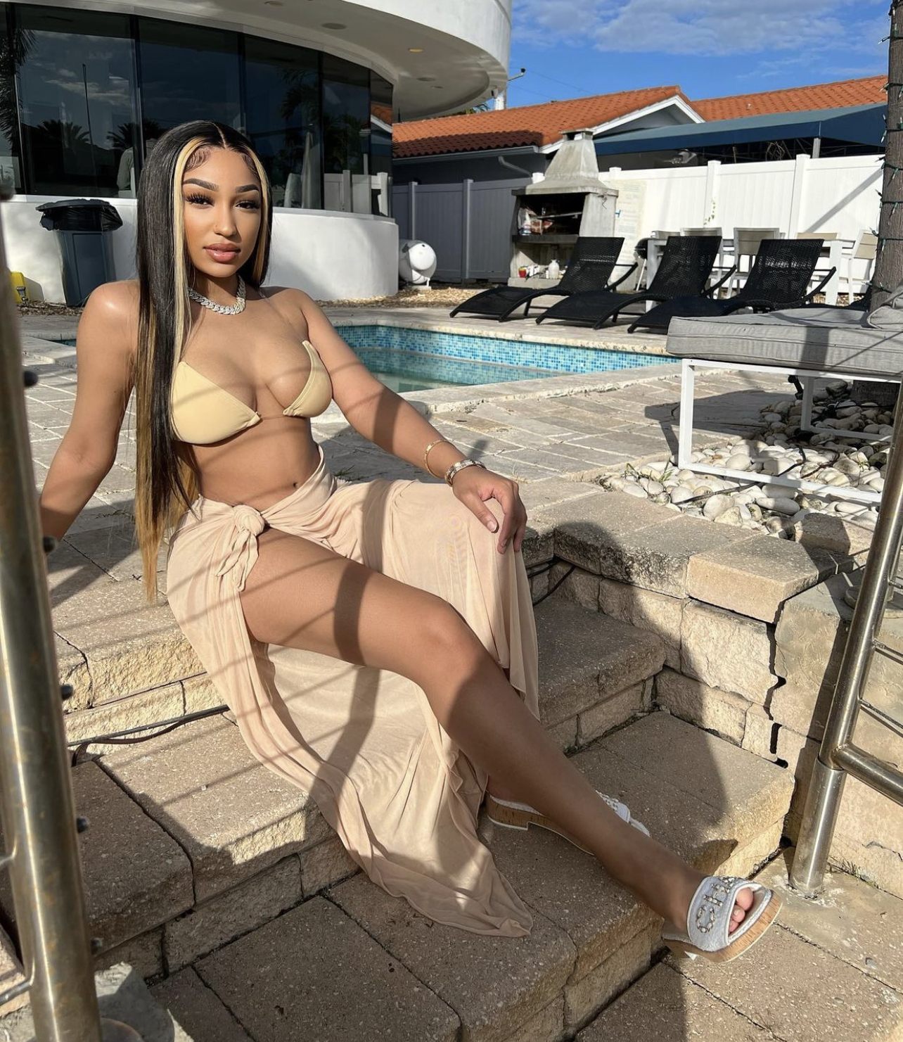 Ella Rodriguez Soaks Up the Miami Sun in Fashion Nova Nude PVC Strap Bikini