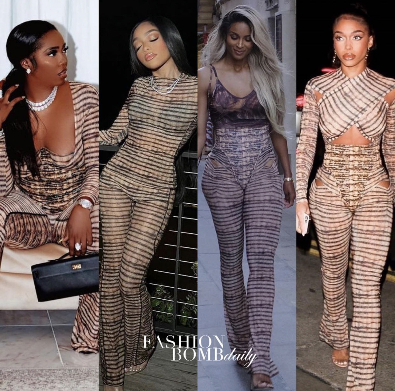 Celebrities are loving Charlotte Knowles, particularly the designer’s KNWLS checked and striped pieces. Figures like Tiwa Savage, Jodie Woods, Ciara and Lori Harvey have all been spotted in the label’s eye-catching printed garments. Let’s see how they styled them:
