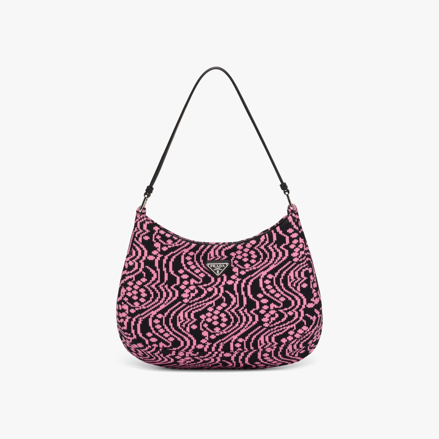 Lori Harvey wore a $2,700 Prada jacquard superfine wool sweater paired with the brand’s $2,450 Cleo jacquard knit and leather bag and black heeled sandals. Rounding off the look, she went with small hoop earrings and a pulled-back hairstyle.
