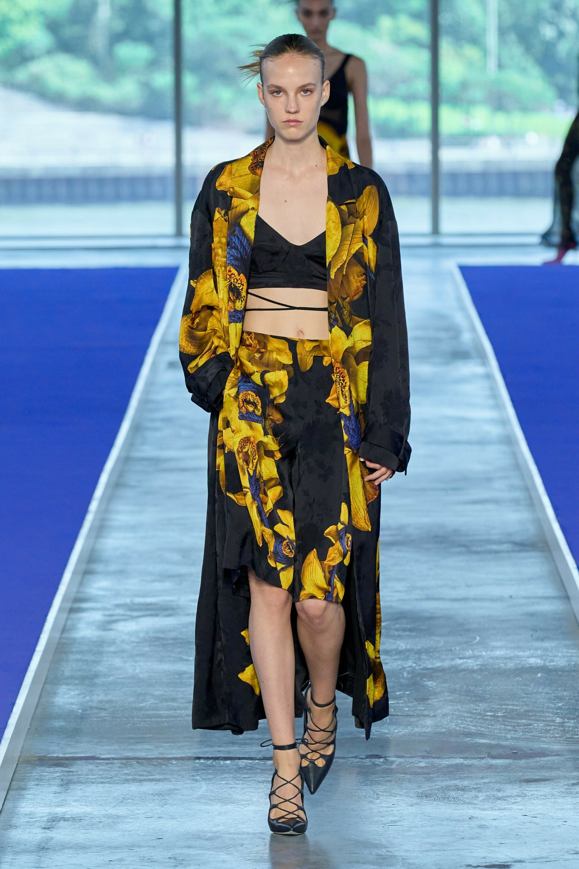 The sole patterns included bold, colorful flowers, which danced along evening dresses, robes, and shorts.